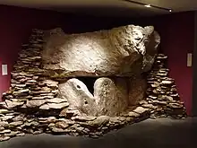 La chambre contenait des ossements de six individus et des tessons d'un gobelet décoré d'impressions de cordelette[2]. Des restes de deux petits vases et deux armatures de flèche à tranchant transversal, le tout datant du Néolithique moyen, ont été retrouvés dans la cellule latérale. Ce matériel archéologique disparate a été attribué à diverses périodes du Néolithique (moyen, final) et au Campaniforme[5].