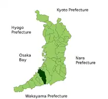 Situation de Kishiwada dans la préfecture d'Osaka.