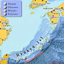 - Parfois traduit par « province de Ryūkyū », bien que « province » au Japon est généralement une traduction de kuni dans l'usage courant.