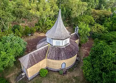 Elle est en forme de rotonde et présente une toiture librement inspirée des pagodes chinoises. Au pied de l'autel en marbre blanc de Carrare se trouve la tombe de Madame Desbassayns. Elle a été transférée depuis le cimetière marin de Saint-Paul en 1866, 20 ans après sa mort[11].