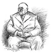 - Un autre maitre de la chanson rosse est M. Dominique Bonnaud. M. Dominique Bonnaud a l'air d'un chef de bureau du Mont-de-piété. Le cheveu court, la moustache dure, le regard perçant et dénicheur derrière les lorgnons, le profil prononcé, il semble vouloir dire sans cesse : « Donnez-moi donc le dossier... » Mais ce n'est pas cela qu'il dit. Il dit des chansons. Il chante les Députés :
