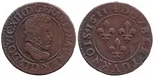 - Dans son ouvrage Monnaies Royales françaises, V. Gadoury publie le dessin d'un curieux double tournois de billon qui aurait été émis en 1656 (cf. p. 92, n°72). M. Duplessis estime de son côté qu'il s'agit d'un liard aux trois lis valant trois deniers émis à Lyon(D. 1578).