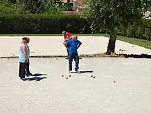 C'est un des quatre formats de jeu de la pétanque. Elle se joue avec une équipe de deux joueurs (ou joueuses) qui possède chacun trois boules[1],[2]. En compétition il y a dans une équipe un pointeur et un tireur. Un match oppose donc deux équipes composé chacune de deux joueurs[3].