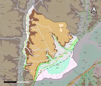 L'occupation des sols de la commune, telle qu'elle ressort de la base de données européenne d’occupation biophysique des sols Corine Land Cover (CLC), est marquée par l'importance des forêts et milieux semi-naturels (58 % en 2018), une proportion sensiblement équivalente à celle de 1990 (56,9 %). La répartition détaillée en 2018 est la suivante : forêts (54 %), zones agricoles hétérogènes (16,1 %), prairies (14,6 %), zones urbanisées (6,5 %), terres arables (4,8 %), milieux à végétation arbustive et/ou herbacée (4 %)[34]. L'évolution de l’occupation des sols de la commune et de ses infrastructures peut être observée sur les différentes représentations cartographiques du territoire : la carte de Cassini (XVIIIe siècle), la carte d'état-major (1820-1866) et les cartes ou photos aériennes de l'IGN pour la période actuelle (1950 à aujourd'hui)[Carte 3].
