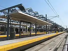 Station du métro de Los Angeles en surface, Downtown Santa Monica se situe sur la ligne E à l'intersection de Colorado Avenue et de 4th Street à Santa Monica à une vingtaine de kilomètres à l'ouest de Downtown Los Angeles[1].