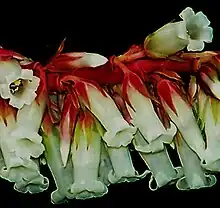Les fleurs sont hermaphrodites, pédicellées sur des inflorescences terminales au sommet des tiges. Il y a cinq sépales et cing pétales, formant une corolle avec des lobes récurvés vers l'extérieur. Les fruits sont des capsules déhiscentes, contenant plusieurs graines[1].