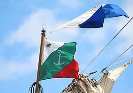 La marine mexicaine utilise également un drapeau spécifique comme pavillon de beaupré. De format carré, il reprend les couleurs nationales dans un ordre différent et en diagonale. Il est chargé de trois étoiles dorées et d'une ancre blanche.