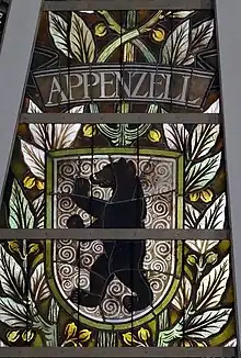 Le drapeau et les armoiries appenzelloises sont des emblèmes officiels du Canton d'Appenzell Rhodes-Extérieures.