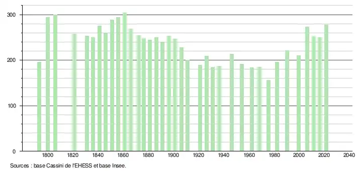 - Fiches Insee - Populations légales de la commune pour les années 2006, 2007, 2008, 2009, 2010, 2011, 2012, 2013, 2014, 2015, 2016, 2017, 2018, 2019, 2020 et 2021.