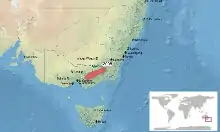 Cette espèce est endémique d'Australie[1]. Elle se rencontre entre 200 et 1 100 m d'altitude du Parc national du lac Eildon dans l'État de Victoria au mont Kosciuszko en Nouvelle-Galles du Sud[1]. La zone de répartition de cette espèce est estimée à 5 km2[2].