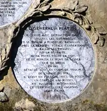 Plaque d'honneur pour Platen sur l'obélisque de Rheinsberg