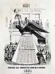 En 1698, Ath redevient espagnole. Le Conseil de Ville se demande « si on fera quelque chose pour démonstration de joije » à la dédicace ; il décide « d'en agir comme Messieurs trouveront convenir »[18]. Dans une copie du compte pour l'an 1700 de la confrérie des tailleurs de saint Maur, figure la plus ancienne mention de l'Aigle connue à ce jour[19]. Un mandelier et un certain De Peste y reçoivent un salaire de cinq livres deux sous « pour avoir raccommodé l'aigle pour la procession ». L'aigle ainsi restauré accuse donc déjà quelques années et ce document permet de faire reculer sa création avant la fin du XVIIe siècle. Le compte mentionne aussi la rémunération des porteurs du géant et du « tamboureur quy l'at accompagné à la procession ». Comme à Douai de nos jours encore, les géants athois n'étaient sans doute alors escortés que par un tamboureur[alpha 2] et que les pas de danse qu'ils exécutaient n'étaient soutenus que par le seul roulement du tambour.
