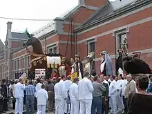 La ducasse de 2004 est marquée par la catastrophe de Ghislenghien, survenue quelques semaines auparavant. Seuls sont maintenus les « Vêpres Gouyasse » et les cortèges du dimanche. De nombreuses animations sont supprimées ou reportées[55]. En 2006, tous les géants sont exceptionnellement alignés devant la gare, avant le départ du cortège, pour rendre hommage aux anciens porteurs.