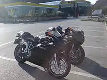 Apparue en 2002, la 749 est équipée d'un moteur de 748 cm3. La fourche est une Showa, l'amortisseur un Sachs.