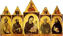 - Vierge à l'Enfant entourée de saints (vers 1315), National Gallery, Londres[10]