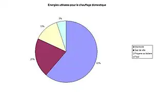 La principale source d'énergie pour le chauffage domestique est l'électricité[3].