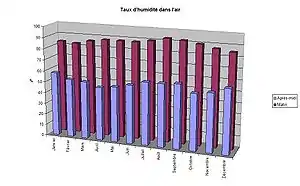 | Température moyenne (°C) | 8 | 9 | 14 | 17 | 22 | 26 | 28 | 27 | 24 | 18 | 13 | 8 | 17,8 |