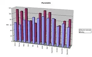 | Précipitations (mm) | 112 | 107 | 117 | 75 | 68 | 104 | 114 | 109 | 87 | 66 | 83 | 90 | 1 132 |