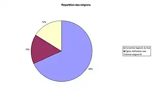 La principale religion pratiquée à Dudley est le protestantisme. La première église est la Convention baptiste du Sud, qui rassemble plus des deux tiers des fidèles en 2008[3].