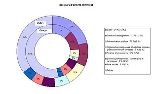 Pour la population active féminine, les principaux secteurs d'activité sont les services de santé (21 %) et l'enseignement (11 %). Le secteur de la santé et le secteur administratif sont nettement sur-représentés, par rapport au reste de l'État.