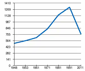 - (sq) « Évolution de la population 1948-2011 », sur pop-stat.mashke.org (consulté le ).