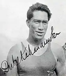 Duke Paoa Kahinu Mokoe Hulikohola Kahanamoku dit Duke Kahanamoku, né le à Honolulu (Hawaï) et mort le dans la même ville, est un nageur et un surfeur américain. Premier nageur à conserver le titre olympique du 100 mètres nage libre 1920 après celui de 1912, il détient également une autre médaille d'or olympique avec le relais 4 × 200 mètres en 1920, deux médailles d'argent aux jeux de 1924 et au 4 × 200 mètres en 1912. Il est également considéré comme l'une des personnalités les plus importantes du monde du surf en faisant découvrir sa pratique sur les côtes américaines, en Australie et dans le monde entier lors d'exhibitions.
