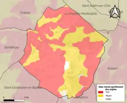Le retrait-gonflement des sols argileux est susceptible d'engendrer des dommages importants aux bâtiments en cas d’alternance de périodes de sécheresse et de pluie. 98,4 % de la superficie communale est en aléa moyen ou fort (84,7 % au niveau départemental et 48,5 % au niveau national). Sur les 357 bâtiments dénombrés sur la commune en 2019, 350 sont en aléa moyen ou fort, soit 98 %, à comparer aux 86 % au niveau départemental et 54 % au niveau national. Une cartographie de l'exposition du territoire national au retrait gonflement des sols argileux est disponible sur le site du BRGM[23],[24].