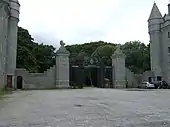 Les pavillons et les portes de la tour du Loch of Skene sont également classés dans la catégorie A. Plusieurs autres structures dans le domaine sont désignées catégorie B, notamment les loges[12]. Les jardins à la française sont situés à l'ouest et au sud du manoir et comportent deux grandes terrasses conçues par Aston Webb au début du XXe siècle[5].