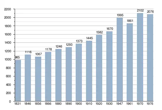 - Sources : INS, Rem. : 1831 jusqu'en 1970 = recensements, 1976= nombre d'habitants au 31 décembre.