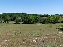 - Le dolmen de Peyre de l'Homme, appelé aussi dolmen des Combarols : ce dolmen est exceptionnel par les dimensions de ses éléments architecturaux et par l'état de préservation de ceux-ci. Il est difficile de reconnaître son type : à chambre double ou à chambre simple longue : 4,7 m. Les dalles de chevet et de fermeture sont toujours en place. Sa table d'épaisseur 42 cm a été cassée et déplacée, trois morceaux sont encore présents. Son tumulus est visible : diamètre 25 m pour 1,3 m de hauteur. Il est inscrit au titre des monuments historiques en 2011[48]. Aux alentours, on trouve les ruines d'un riche patrimoine, bâti avec de grandes dalles de pierre : pierre de clède de même épaisseur que la table du dolmen, citerne couverte par deux dalles de 2,5 m x 1,5 m x 18 cm dont une intacte, maison aux encadrements de porte monumentaux, éléments protégeant l'entrée d'une citerne. On remarque aussi de nombreuses dalles jonchant les environs 44° 41′ 30″ N, 1° 47′ 11″ E