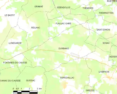 Située sur la route de Gramat à Figeac, la commune de Durbans comporte quatre hameaux :