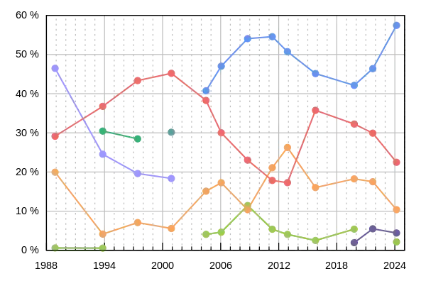 | Les élections partielles sont surlignées en gris sur le graphique. |