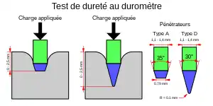 Diagramme d'un duromètre pénétrateur utilisé pour les types Shore A et D