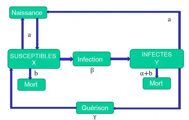 On considérera ici, pour des raisons évidentes de simplification du modèle, que l’on est dans le cas d’un micro-parasite au cycle monoxène infectant un hôte invertébré (capable de guérir d'une infection mais dont le système immunitaire ne possède pas de mémoire).