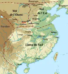 | Wei de l'Ouest 535-556 : 21 ans | Liang 502-557 : 55 ans |