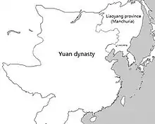 Avant l'émergence de l'Empire mongol au début du XIIIe siècle, la Mandchourie est gouvernée par les Jurchens de la dynastie Jin. Ce n'est qu'à la suite de la conquête mongole de la dynastie Jin, que la Chine du Nord et la Mandchourie passent sous le contrôle des Mongols. Après la fondation de la dynastie Yuan, la Mandchourie est intégrée aux territoires Yuan. Kubilai Khan, le fondateur de la dynastie, crée en 1269 la province de Liaoyang (遼陽行省), qui s'étend jusqu'au nord-est de la péninsule coréenne. La province devient un Xuanweisi (宣慰司) en 1286, avant de redevenir la province de Liaoyang en 1287. Par la suite, son statut de province reste inchangé jusqu'à la fin de la dynastie Yuan. Selon le Yuan Shi, qui est l'histoire officielle de la dynastie Yuan, les Mongols ont soumis militairement les Guwei (骨嵬, Gǔwéi), qui habitent dans l'île de Sakhaline. En 1308, tous les habitants de Sakhaline sont soumis à la dynastie Yuan. Même après le renversement de la dynastie Yuan par les Ming en 1368, la Mandchourie reste encore contrôlée par les Mongols, sous la houlette de Naghachu, un général de la dynastie mongole des Yuan du Nord, qui était à l'origine un officiel des Yuan. La conquête de la Mandchourie par les Ming n'a lieu qu'après la campagne militaire des Ming contre Naghachu en 1387.