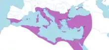 Une fois la paix intérieure rétablie, Justinien crut le moment venu de réaliser son grand dessein : la restauration de l’Empire romain dans son intégralité. Désirant effacer d’abord le souvenir de l’humiliante défaite de Basiliscus devant les Vandales en 468, il envoya le général Bélisaire reconquérir Carthage et faire prisonnier le roi Gélimer (533-534)[27], [28], à la suite de quoi il l’envoya reconquérir la Sicile, puis l’Italie ce qui assurait un rapprochement politique avec le pape et la sécurité commerciale de la route menant à l’Afrique du Nord [29]. Cette dernière conquête devait s’avérer toutefois plus difficile que celle du royaume vandale et s’étala sur plusieurs années[30],[31].