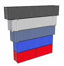 | 40 pieds (12 m) | 8 pieds (2,44 m) | 9 ½ pieds (2,90 m) | 76,4 m3 | 2[3] |