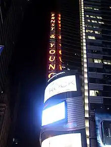 EY, aussi connu sous son ancien nom Ernst & Young et associés, est un cabinet d'audit financier et de conseil. Membre du Big Four, il est le troisième réseau mondial quant au chiffre d'affaires (après Deloitte et PwC) en 2020[5], et fournit des prestations d'audit financier, de conseil (systèmes d'information, ressources humaines, organisation, finance, stratégie…), de cabinets d'avocats (notamment sur les questions fiscales)[6].