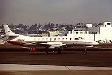 Fort de ses premiers succès, Ed Swearingen entreprend alors le développement du Merlin, bimoteur d'affaire pressurisé qui est rapidement équipé de turbopropulseurs et qui effectue son premier vol en 1965. Cet avion qui est directement en concurrence avec le Beechcraft King Air arrive au mauvais moment. La récession économique oblige Ed Swearingen à céder les droits sur les Excalibur et Queenaire à Excalibur Aviation Company en 1970 puis à déposer le bilan en 1971. Fairchild Industries rachète alors Swearingen Aircraft et produit l'essentiel des 1 053 Swearingen Merlin et Metro livrés jusqu’en 1998[1].
