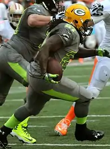 | 2014 | Packers de Green Bay | 16 | 246 | 1 139 | 4,6 | 9 | 42 | 427 | 10,2 | 4 | 3 | 2 | |||