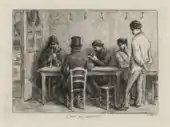 Ami de Félix Bracquemond qui traduisit certains de ses dessins[4], il expérimente la technique de l'eau-forte, produisant en 1864-1865 un album, Types parisiens, composé de dix planches représentant les cabarets de Montparnasse, chez l'éditeur Alfred Cadart dans le cadre des livraisons de la Société des aquafortistes[5].