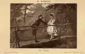 En 1870, il présente au Salon une aquarelle, La Petite Curieuse, un projet d'éventail : c'est le début d'une longue série consacrée à la jeunesse et à l'enfance, thème qui marquera désormais une grande partie de son travail. Ses scènes vont vite devenir à la mode et sont copiées de son vivant, comme par exemple sa toile Le Péage (1868)[2], scène champêtre et galante, qui, selon Henri Beraldi, a été reproduite « un nombre incalculable de fois » sous la forme de gravure typo, chromos, carte de vœux, etc.[3].