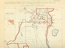 En 1888, Van Eetvelde défend les intérêts de l'État Indépendant du Congo en face du ministre des Affaires étrangères du Portugal José Vicente Barbosa du Bocage qui revendique pour la colonie d'Angola les territoires de l'ancien Royaume Lunda. Les Portugais finirent par accepter le Kwango comme limite jusqu’au 8° de latitude sud où elle suit le parallèle vers l'est jusqu'à la rivière Kasaï[5].