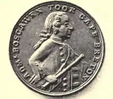 Edward Boscawen, né le à Tregothnan en Cornouailles et mort le à Hatchlands Park dans le Surrey, est un officier de marine et homme politique britannique. Admiral dans la Royal Navy pendant la guerre de Succession d'Autriche et la guerre de Sept Ans, il sera élu Member of Parliament pour le borough de Truro, en Cornouailles[5]. Il est principalement connu pour ses commandements tout au long du XVIIIe siècle et aux combats qu'il a remporté sur mer, parmi lesquels le siège de Louisbourg en 1758 et la bataille de Lagos en 1759[5]. Il est également connu pour être l'officier ayant signé l'ordre autorisant l'exécution de l'amiral John Byng après que celui-ci fut passé en cour martiale en 1757 après son échec à la bataille de Minorque et la prise de l'île par les Français[5].