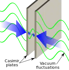 L’effet Casimir, tel que prédit par le physicien néerlandais Hendrik Casimir en 1948, est une force attractive entre deux plaques parallèles conductrices et non chargées[1].