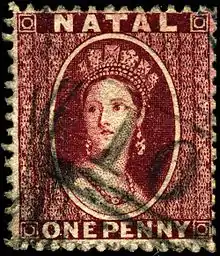 En 1859, le Natal, colonie du sud de l'Afrique, remplace ses timbres-poste imprimés en relief et à sec par l'effigie Chalon qui est utilisé jusqu'en 1867[16].