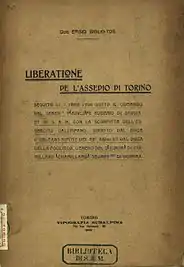 - Liberatione de l'assedio di Torino seguito li 7 7bre 1706 sotto il commando del S. P[22]. Eugenio di Savoia et di S. A. R., con la sconfitta dell'essercito gallispano (Libération de l'assaut de Turin le et défaite de l'armée franco-espagnole par le Prince Sérénissime Eugène de Savoie et Son Altesse Royale), tip. Subalpina 1905. - 74 pages. Texte en ligne.