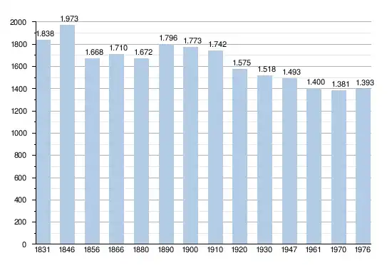 - Sources : INS, Rem. : 1831 jusqu'en 1970 = recensements, 1976 = nombre d'habitants au 31 décembre[2].