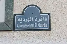Plaque signalant l'arrondissement d'El Ouardia